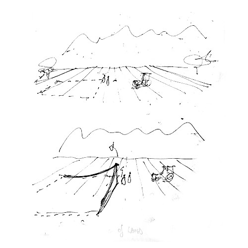 This is our architectural response for a boutique concept restaurant & functions facility the client wish to build in the lucern field behind the existing winery & farmhouse fronting the road. In essence the building gently grows out of the landscape and connects to the existing building by setting up a new spatial relationship which maintains clear views to the veld, creates the opportunity to extend the existing gardens with a defined seasonal sculpture veld, and purposefully directs views. It also places the new building on the ‘knot’ of this new space and becomes a focal element as you enter the property from the street through the gap between the exiting buildings.