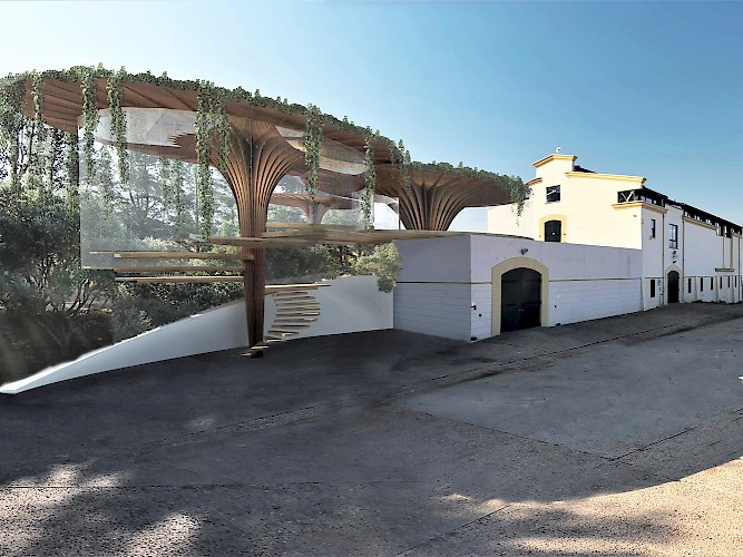 Our proposal was for the new addition to respect the existing building, and to distance itself with it's own strong yet complimentary identity. The disposition of the existing cellar is reminiscent of the Tuscan landscape where buildings would be placed prominently on a hilltop, not only taking advantage of the surrounding views, but in itself dotting the landscape adorned with its surrounding trees, almost in an iconic manner. The idea of these 'iconic' trees is also something that resonates more locally in the nearby town. Once an ‘alien’ introduction to the South African landscape, the Oak tree is now synonymous with the identity of Stellenbosch. Nicknamed the ‘Eikestad’ (City of Oaks), they were originally planted, and encouraged to be planted, by Stellenbosch founder, Simon van der Stel, as the land was very fertile. Today they beautifully line the streets, give shade for lazing students in the hot summer days, and grace the facades of many of the historical buildings. Fittingly; Oak is also well known as the material of choice for the manufacture of wine barrels used during the maturation process of wine, to help wine give its distinct flavours and colour.